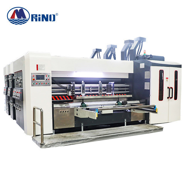 Cet équipement peut des processus accomplir l'impression multicolore, se plisser, canneler, équilibrer, coupe de coin, découper, poinçonner avec des matrices et autre de carton en même temps. L'équipement adopte l'alimentation-papier d'adsorption, l'inverseur d'hôte et de fan commandent le début et l'arrêt, la fan de haute puissance de dépoussiérage nettoie la surface du carton, l'écran tactile principal et l'écran tactile de côté emploient le système de programmation de PLC pour commander chaque partie, et réalisent l'interface homme-machine pour commander l'opération de chaque cloison.